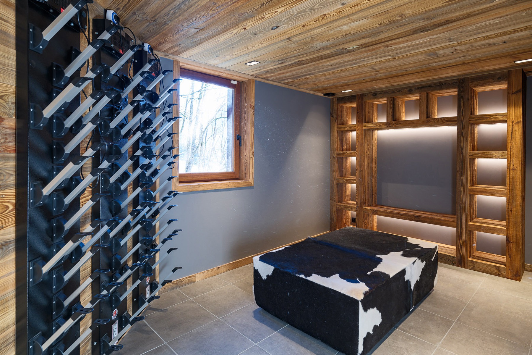 The room has an external entrance via the side gate, so that access is easy when you come back with all of your ski equipment. The floor is tiled and has underfloor heating.